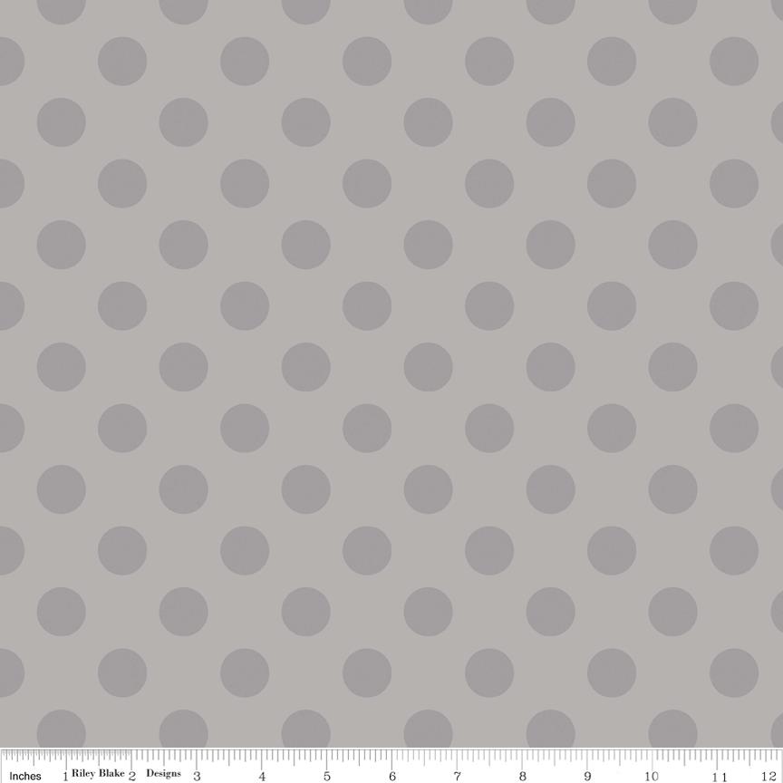 Riley Blake Designs "Medium Dots Tone on Tone" by Riley Blake Designs. 100% cotton, pattern C430-40 Gray. Dots measure 3/4" in diameter.