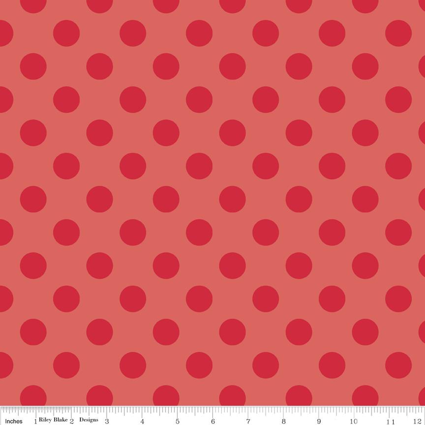 Riley Blake Designs "Medium Dots Tone on Tone" by Riley Blake Designs. 100% cotton, pattern C430-80 Red. Dots measure 3/4" in diameter.