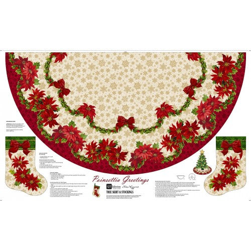 Poinsettia Greetings Treeskirt 90cmx152cm - MULTI