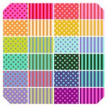 View Large Image | Tula Pink - Design Roll All Stars Pom Poms & Stripes Tula Pink 46 strips 2 1/2" of Tula Pink All Stars. Contains Pom Poms, Stripes and Solids.